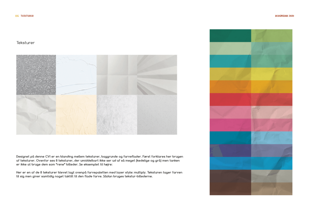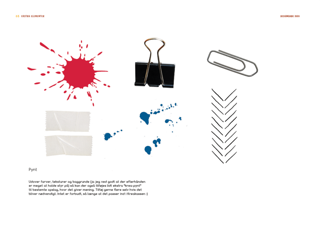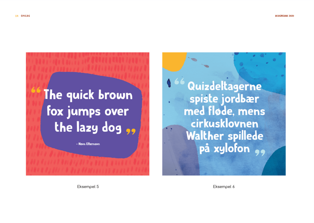 Nedenunder kan ses udpluk af den designguide, jeg leverede til dem. Identitet tager godt nok udgangspunkt i skabeloner, men et bredt udvalg af layouts og forskellige kombinationsmuligheder gør at hvert opslag bliver unikt. Vurder selv ved at tage et kig på udplukket af opslag nederst på siden.